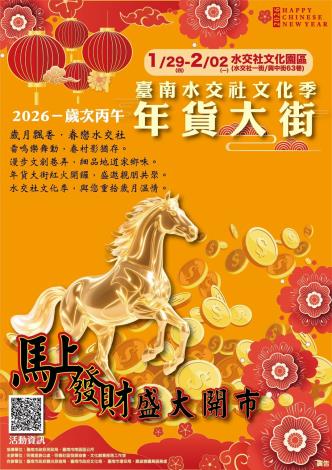 今年由臺南市明德里辦公處辦理的「水交社文化季暨眷村年貨大街」,以及新生里辦公處接力舉辦的「臺南眷村年貨大街」,將串聯成雙場域、跨時段的年貨盛會。市府表示,眷村美食不僅是令人懷念的家常佳餚,更承載著時代記憶與生活智慧,透過飲食與年節習俗,傳遞早年眷村居民的堅韌精神與人情溫度,期盼藉此讓年輕世代認識眷村文化,促進世代之間的情感交流。 南區區公所指出,本次年貨大街結合文化展演與在地創意,不僅匯集多樣化的眷村年菜、特色小吃與應景年貨,現場也安排多項精彩演出,邀請在地學校與藝文團隊共襄盛舉。而南區眷村年貨大街活動時間,為1月29日到2月2日在水交社眷村文化園區登場,以及2月6日到2月10日在臺南市棒球場旁盛大舉行。 歡迎市民朋友攜家帶眷,在農曆年前走訪南區眷村年貨大街,選購富有年節氛圍的特色年貨,開喜迎新春!
