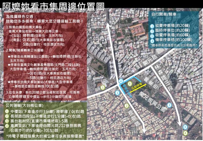 主辦單位表示,為延續眷村文化,這次市集活動特地選在北區原美國學校舊址舉行,因為台南北區是眷村的重要聚落,具有特殊的意義,而這次活動以「熱情、溫馨、包容、關懷」為主軸,除了邀集各眷村美食店家出席以外,也邀請應景的年貨攤商共同參與。