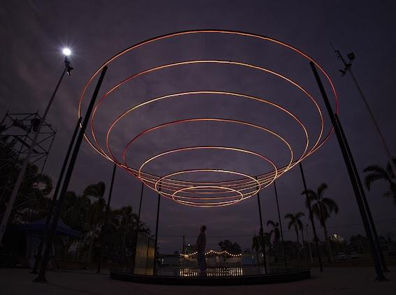 文化局說明,今年展區共規劃7件主題作品,其中包含4件互動式裝置,結合聲音、影像、水霧與感測科技,讓民眾成為作品的一部分;民眾能透過互動光影作品,隨著步伐與跳躍,激起層層光之漣漪,為夜晚湖畔增添動感與童趣。