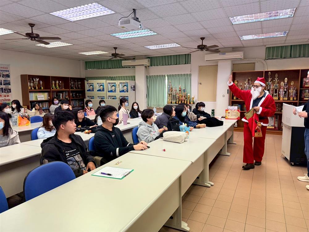 除了走逛校園外,聖誕老人和麋鹿團也隨機進到教室和師生同歡,讓不少正在開班週會的師生驚喜連連。其中,來自越南的外籍生,看到聖誕老人和麋鹿出現在教室驚喜歡呼,並對學校用心營造歡樂氣氛感到窩心。